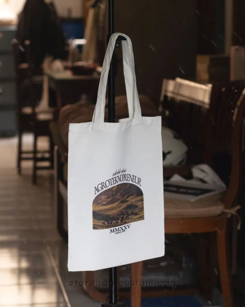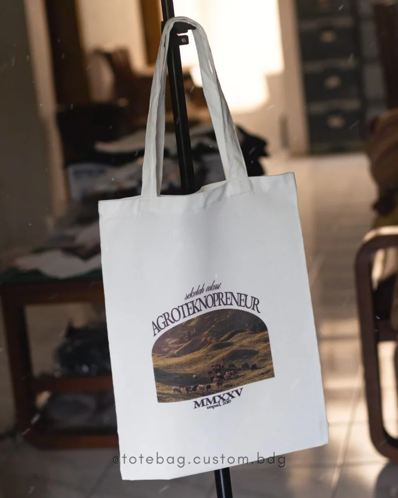 Kami melayani totebag custom Bandung dengan proses cepat dan hasil cetak yang jelas. Setiap totebag dibuat untuk membawa nilai, bukan sekadar barang.