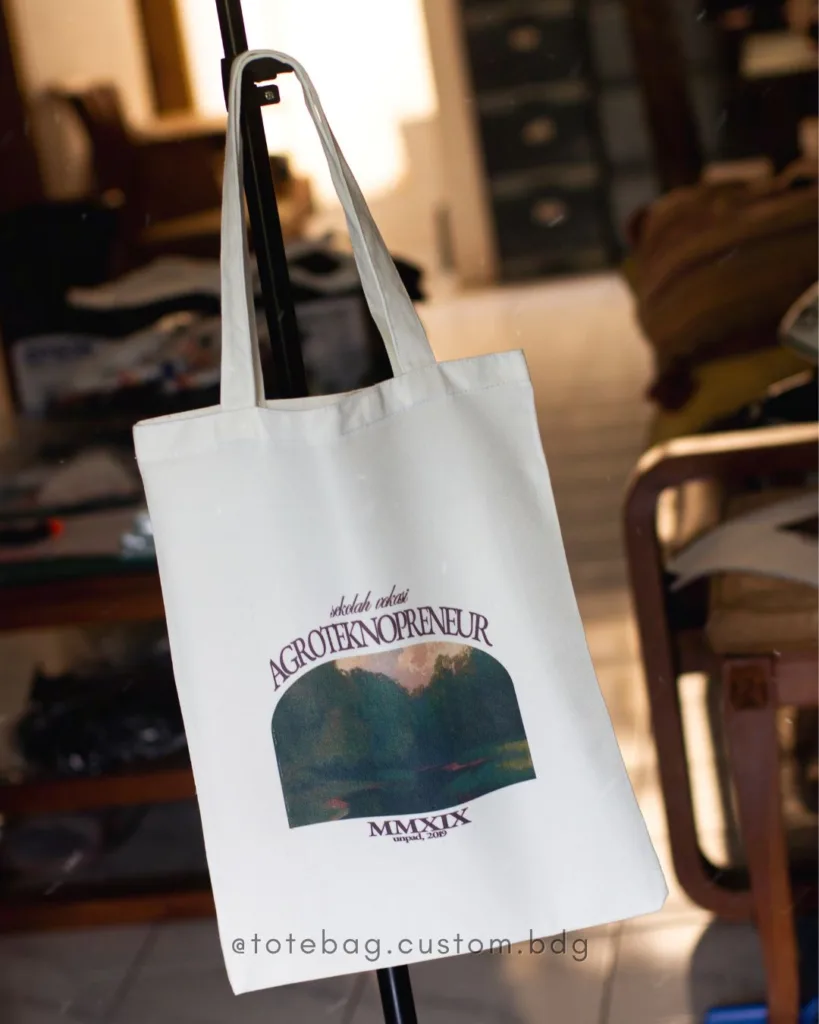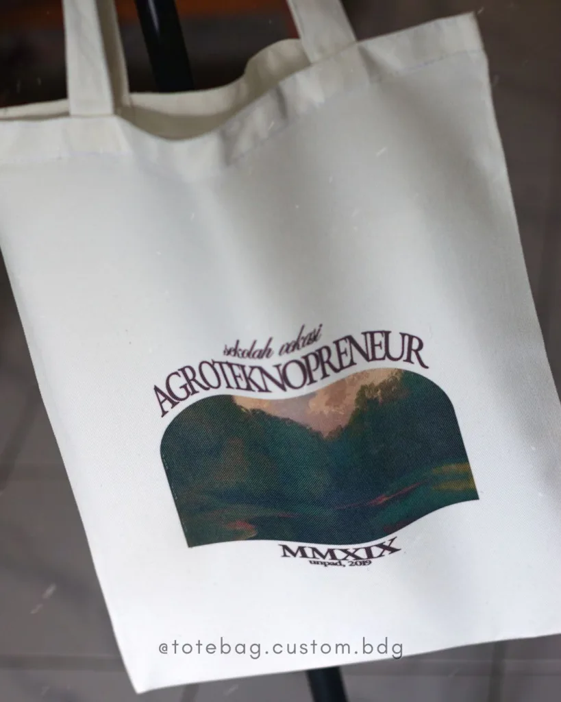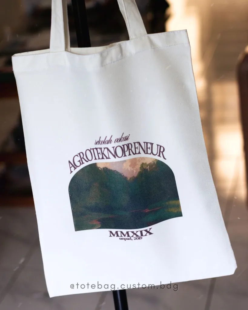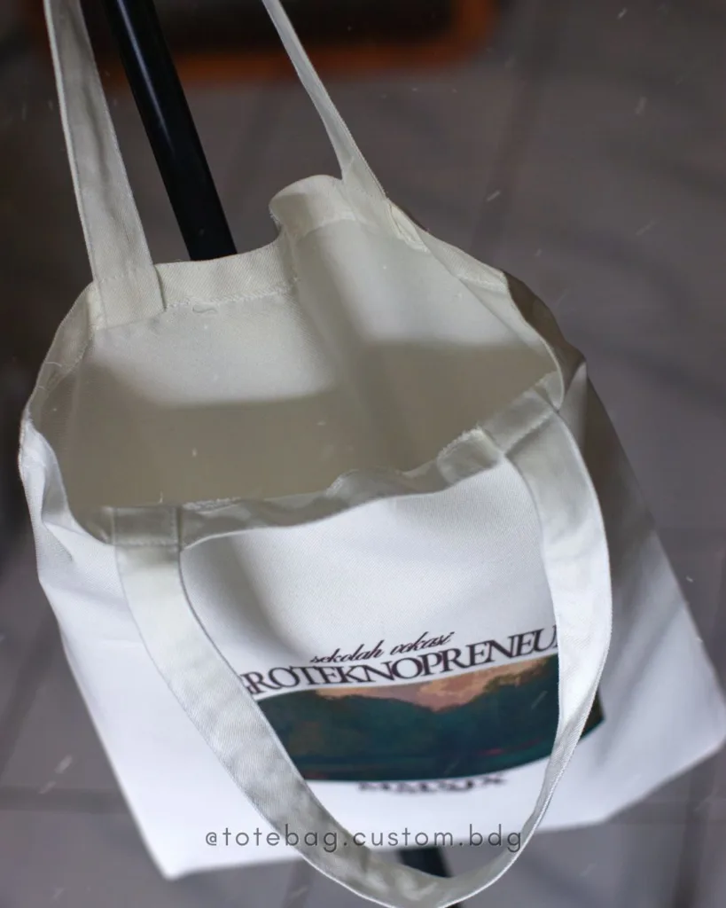 Totebag Kanvas 30×40 dari totebag.custom.bdg adalah pilihan tepat untuk kebutuhan harian sekaligus branding. Diproduksi di Bandung dengan bahan kanvas berkualitas, totebag ini kuat, nyaman dipakai, dan cocok untuk custom desain sesuai identitas brand atau kebutuhan pribadi.